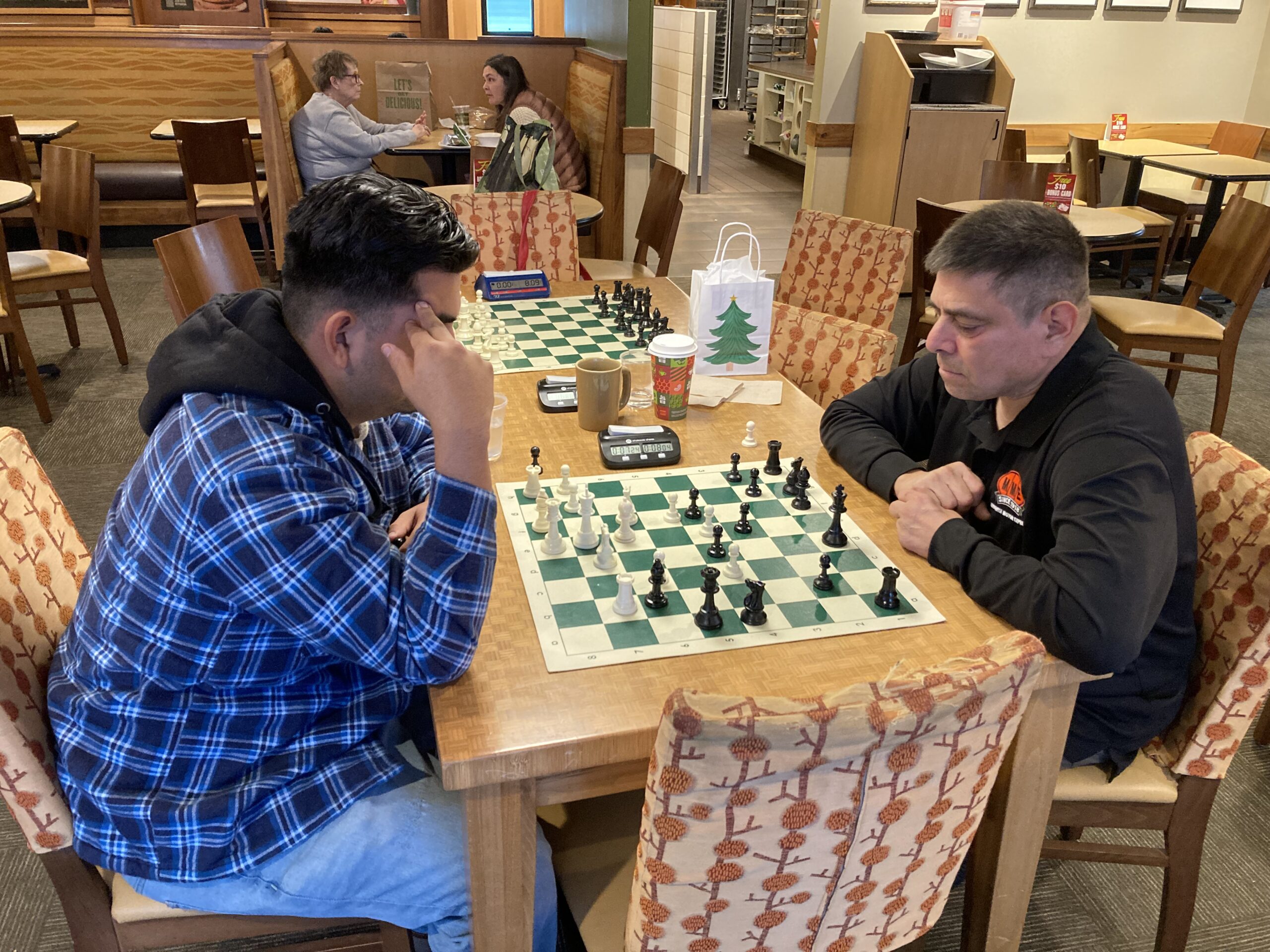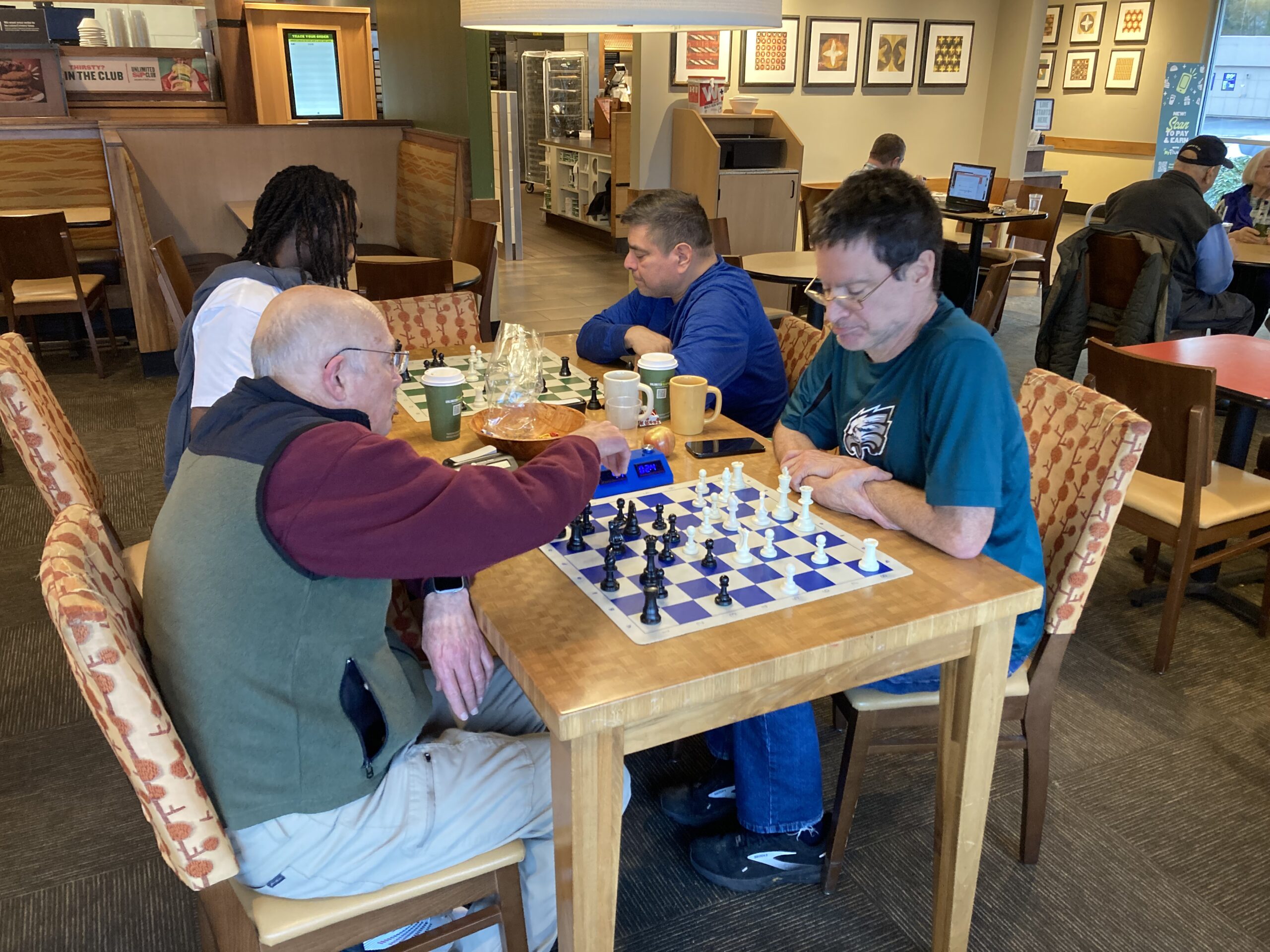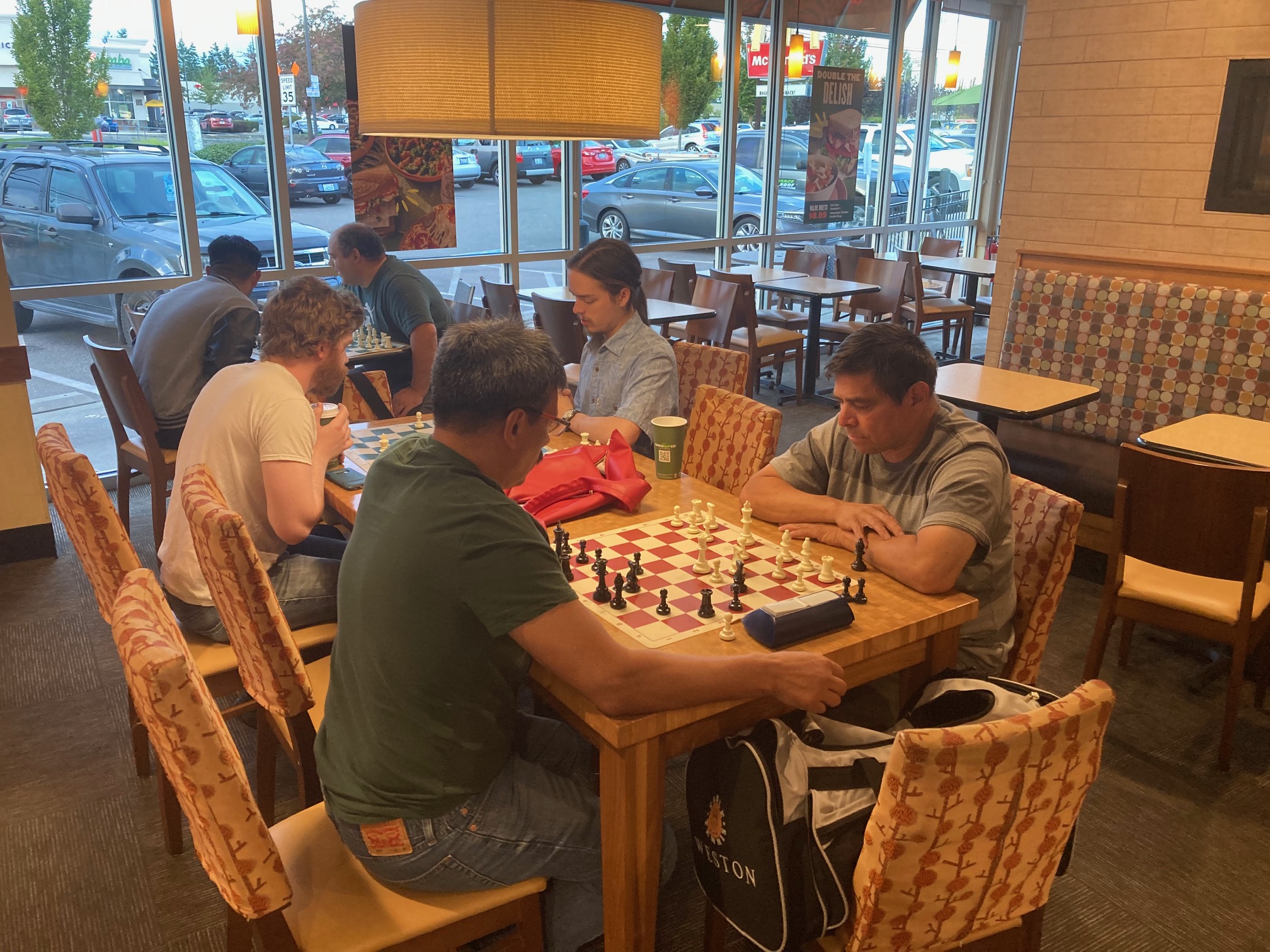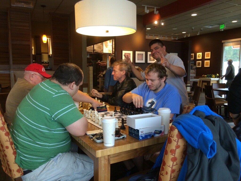 We are a casual chess club in the Pacific North West located in Everett, WA. The chess club was founded in 2012 when a group of local chess enthusiasts met in downtown Everett, WA at a local coffee shop. Throughout the years the group continued to meet and play at various venues in Everett including the Firehouse coffee shop, Everett Public Library, the Irishmen pub, Seas of the day cafe, and Panera Bread. There is no club membership and all ages and skill levels are welcomed to join us for casual chess and other activities.