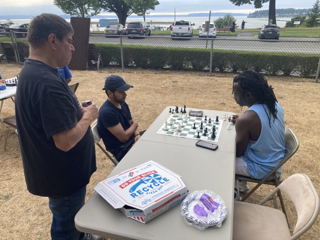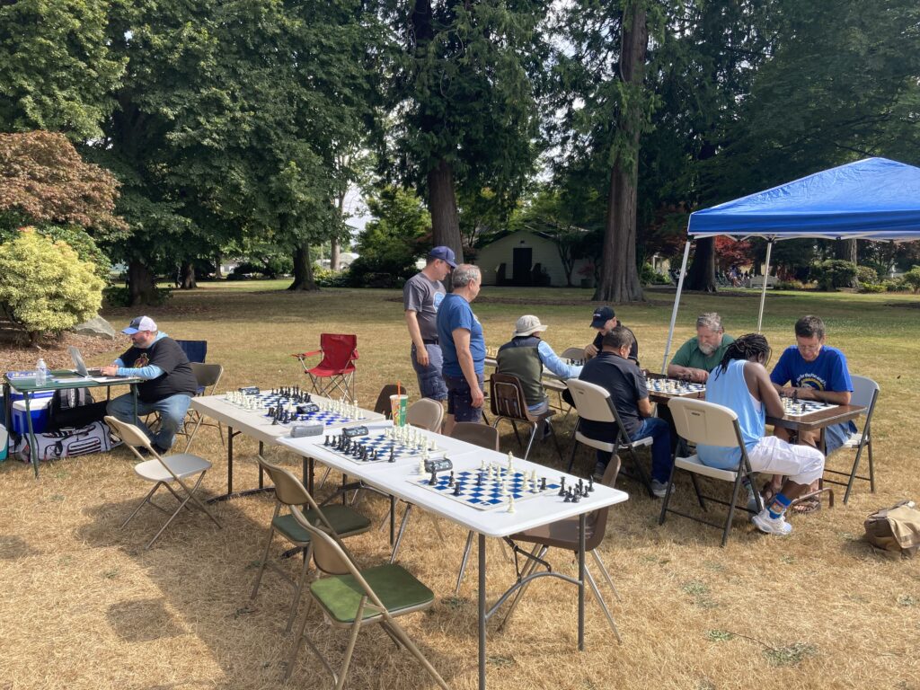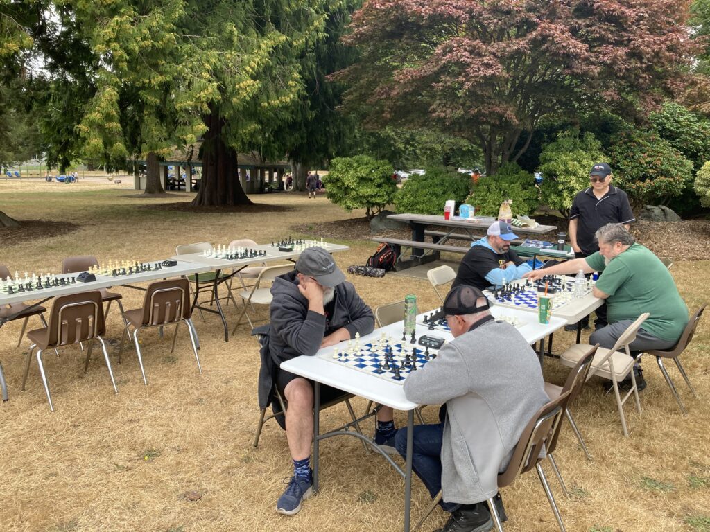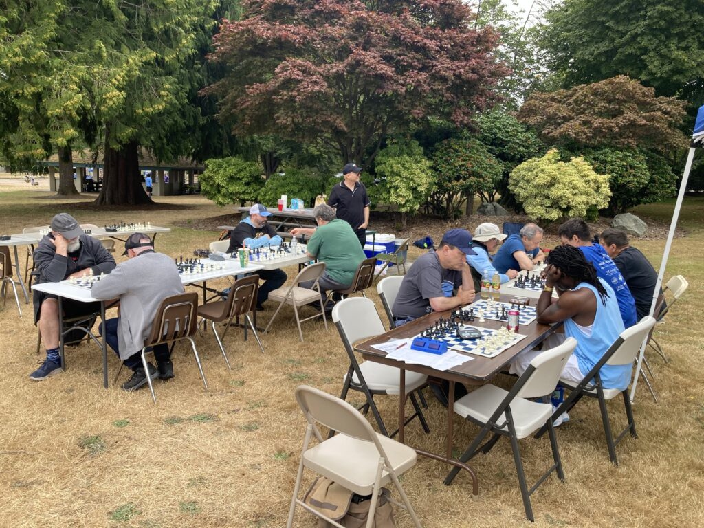 The summer picnic took place at Legion Memorial Park in Everett on Saturday August 2nd, 2025 from 10AM to 6PM. The group engaged in casual blitz and rapid games followed by a 10/0 rapid tourney. The winner of the tournament was FM David Bragg. We also enjoyed Domino’s pizza as well as playing casual frisbee, football, and Jazzminton. Thanks to all who showed up and made this an enjoyable day!